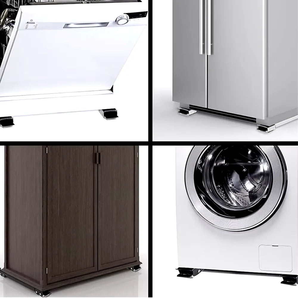 Base with wheels facilitating your day to day. Transport your refrigerator, washing machine, and furniture has never been so simple, without using the force to move the refrigerator, shelves or any other furniture.